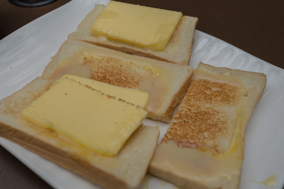 ▲土司微焦而不乾,好吃!牛油附的好多,吃的真爽,還有淋上一些煉乳甜甜的這樣。
