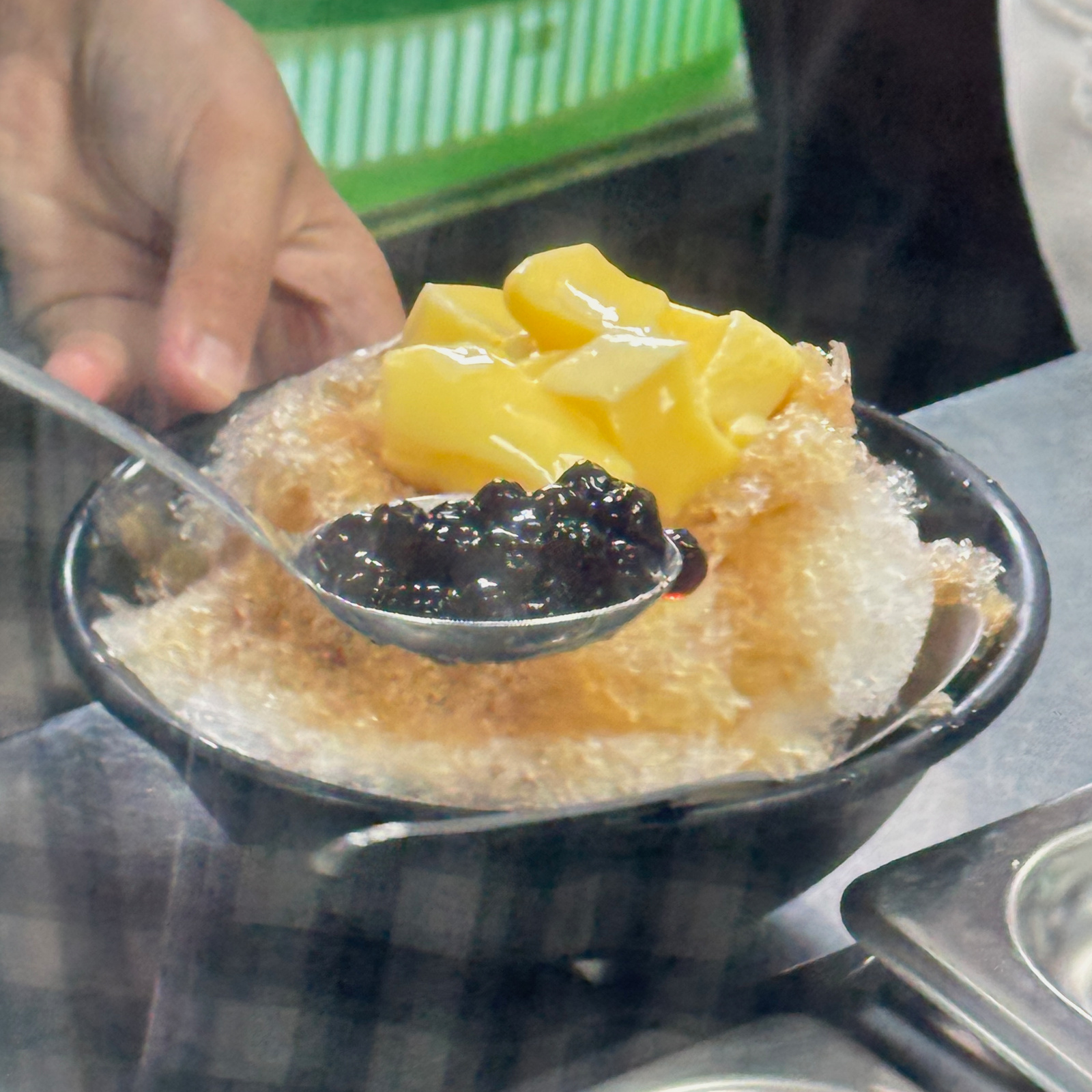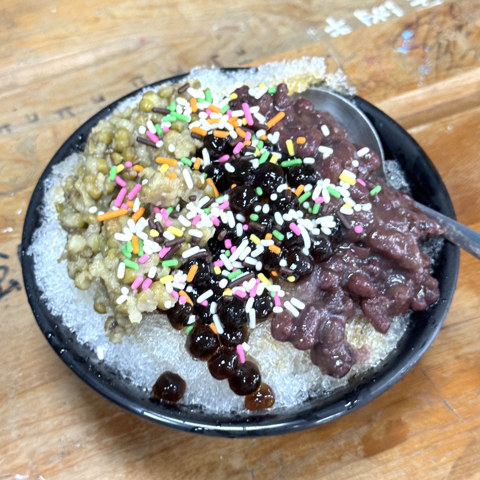 點了一碗傳統的剉冰,滿滿的芋頭、地瓜和Q彈湯圓,每一口都是實在的古早味。在這裡,時間彷彿慢了下來,讓人忘卻煩憂,只想靜靜地,享受這一碗冰、一首曲、一個純粹美好的下午。