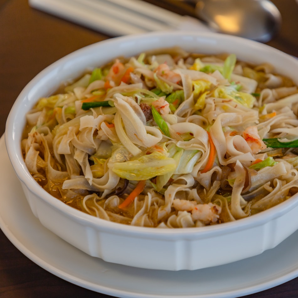 ▲炒魚麵:麵條筋道,魚肉滑嫩,炒製後香氣四溢。