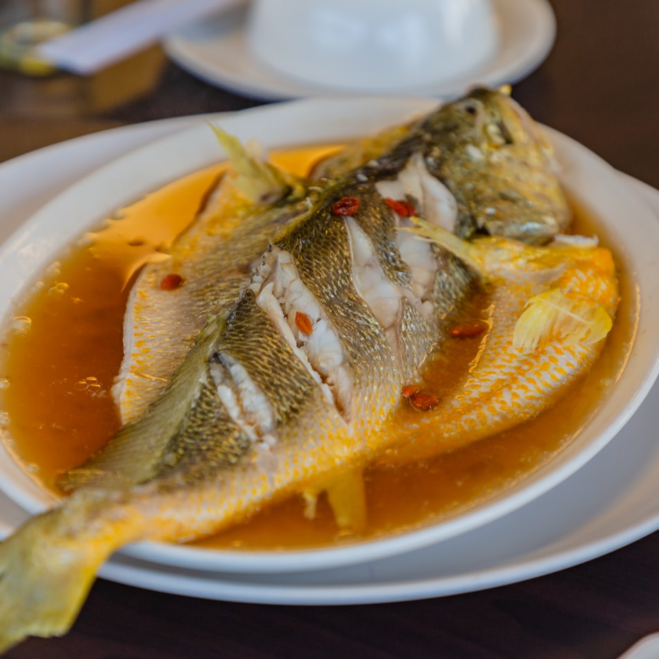 ▲老酒黃魚:魚肉鮮嫩,以老酒調味,風味獨特。