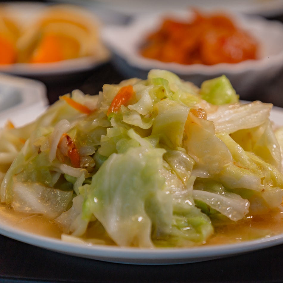 ▲高麗菜:新鮮蔬菜,色澤鮮亮,蒜香味十足。