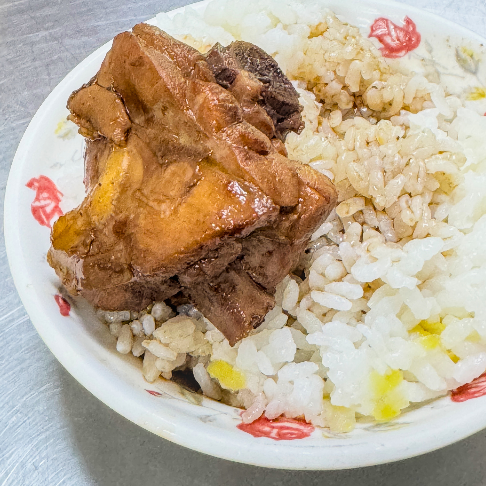 ▲雞肉切絲或小塊,淋上濃郁但不過鹹的滷汁,搭配白飯非常下飯。滷汁帶有醬香與少許甜味,雞肉仍保持嫩度,是平價卻有溫度的一道配餐選擇,和魚皮湯合吃能平衡油膩並提升飽足感。