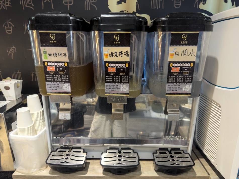 也有無糖綠茶、蜂蜜檸檬、白開水等選擇,清爽解膩。