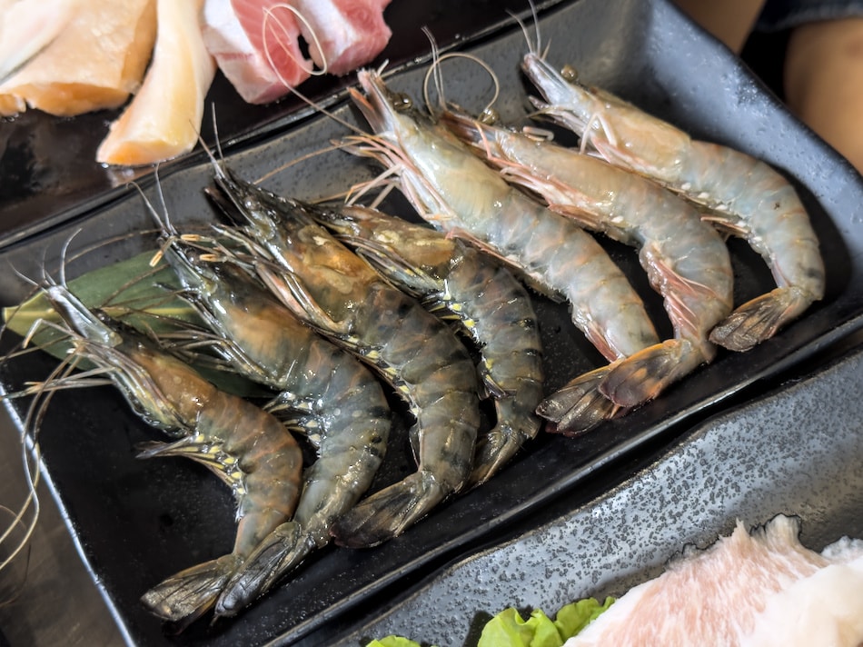 ▲草蝦殼薄肉甜,輕烤就能吃出鮮味。白蝦鮮嫩彈牙,適合喜歡清爽口感的海鮮控。