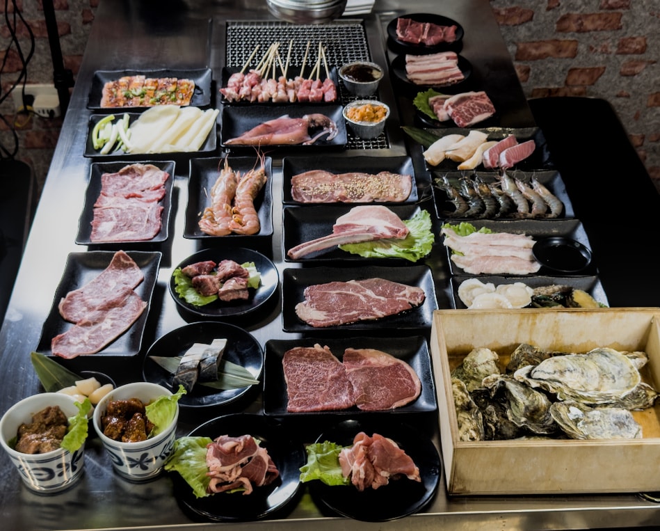 - 學員 439 元:串燒(豬、牛、羊、雞)、香腸、小魚、蔬菜約 30 款;主食 3 種;熟食與涼菜數款