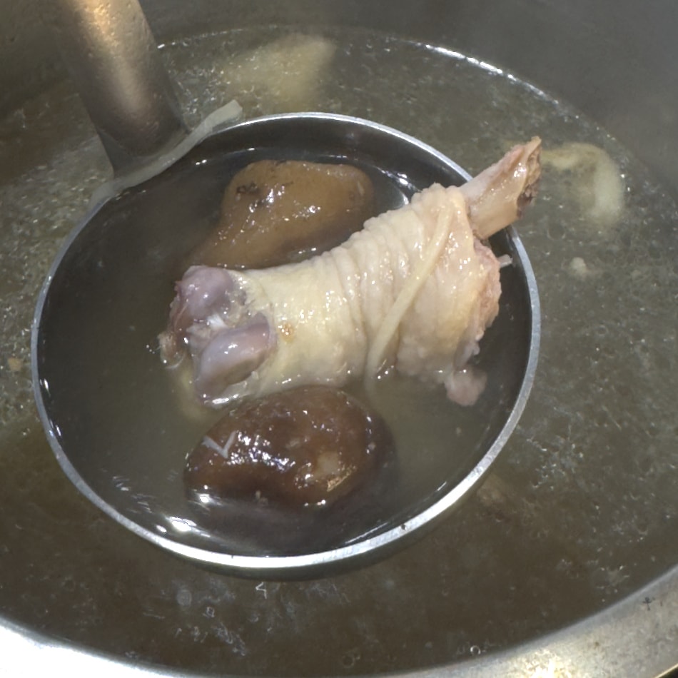 熱騰騰的香菇雞湯每日現煮,湯底甘醇、雞腿扎實好咬,讓你補充滿滿元氣。