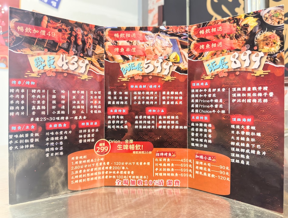 - 升級成吃到飽模式 — 三種價位方案:439 元、599 元、899 元,滿足不同預算與食量需求。