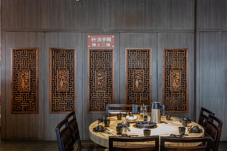▼裡頭的裝潢很有中國風的感覺,有很多的書法文字還有很喜氣的紅色來設計,而且空間很大,每個桌子都不會相鄰太近