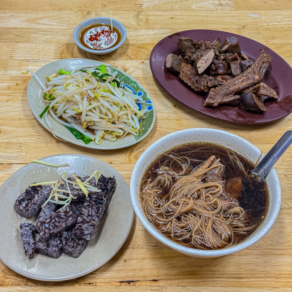 我點了當歸鴨肉麵線,加上鴨血、米血、鴨胗、豆芽菜,直接搞一桌鴨鴨拼盤!