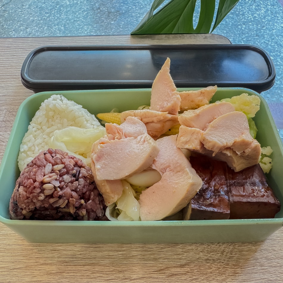 這款主打健康的「泰泰雞胸盒」,主餐是低脂的泰式香料雞胸肉,切片厚實,口感軟嫩,帶有淡淡的香辣氣息。