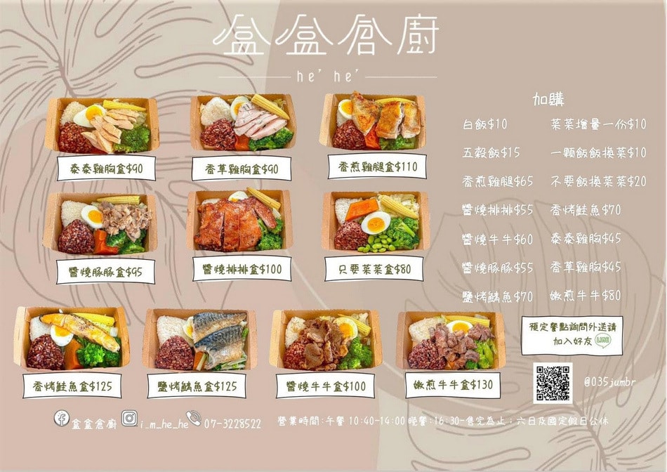「盒盒倉廚」位在高雄市三民區北平二街上,靠近捷運後驛站,交通便利。小巧外觀、整潔明亮,主要以外帶為主。