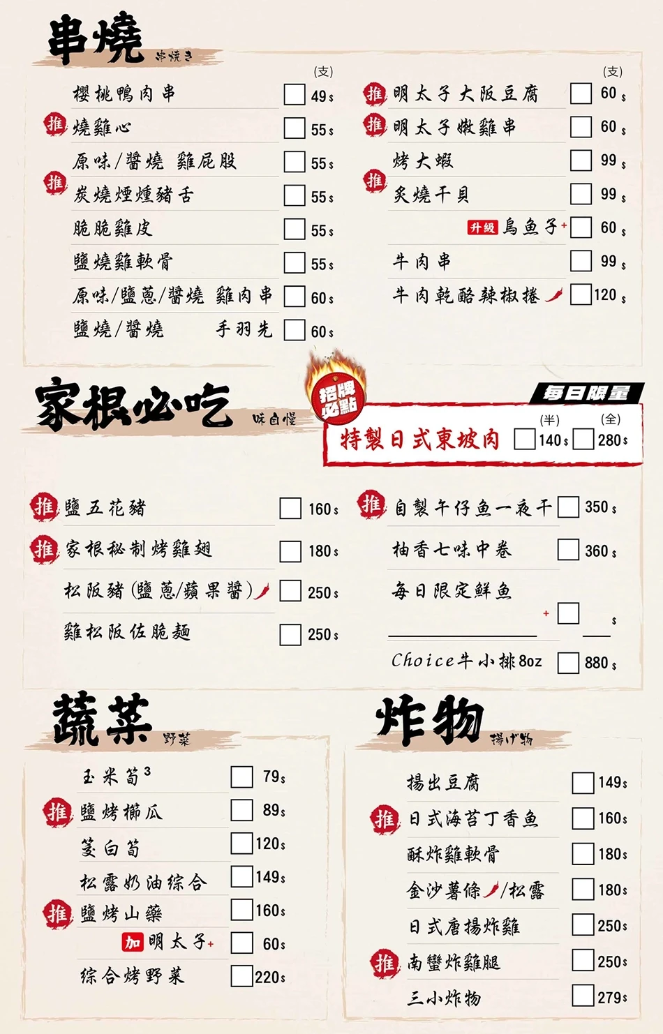 家根創意酒肴菜單