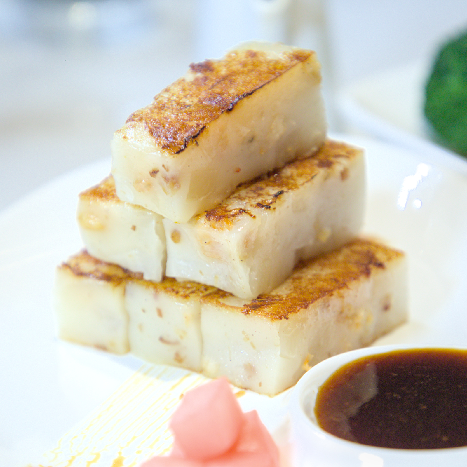 來吃港式飲茶當然不能錯過這些基本款。排骨蒸得軟嫩入味,帶有蒜油香氣;蘿蔔糕煎得表面微焦,吃得到蘿蔔絲的清甜;最特別的是火鴨金菇腸粉,滑嫩的腸粉皮包裹著烤鴨肉絲與金針菇,口感層次豐富,醬汁不死鹹。