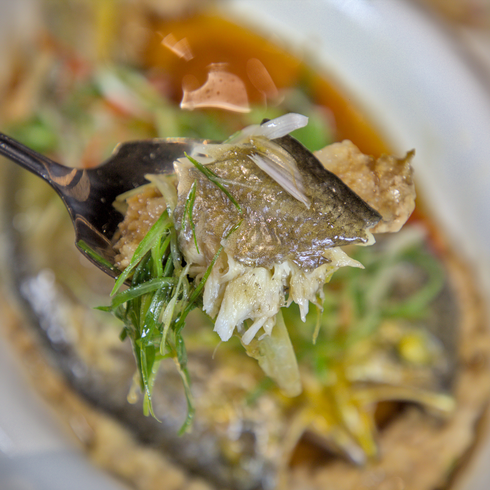 這道菜的視覺效果很棒,酥脆的鍋巴當作基底,放上裹滿酸甜茄汁的大蝦球。剛上桌時趁熱吃,鍋巴還保持著卡滋卡滋的脆度,配上Q彈的蝦肉,酸甜開胃,解膩又好吃。