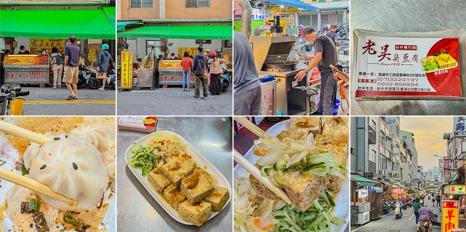 老吳臭豆腐源自台中篤行路的老吳臭豆腐,以五十年傳承發酵工藝與厚切酥炸聞名,外酥內嫩、臭香四溢,配上清爽配菜,成為三民區宵夜首選。即使排隊,也值得耐心等待這份經典滋味,別忘了先到對面小籠包熱身!