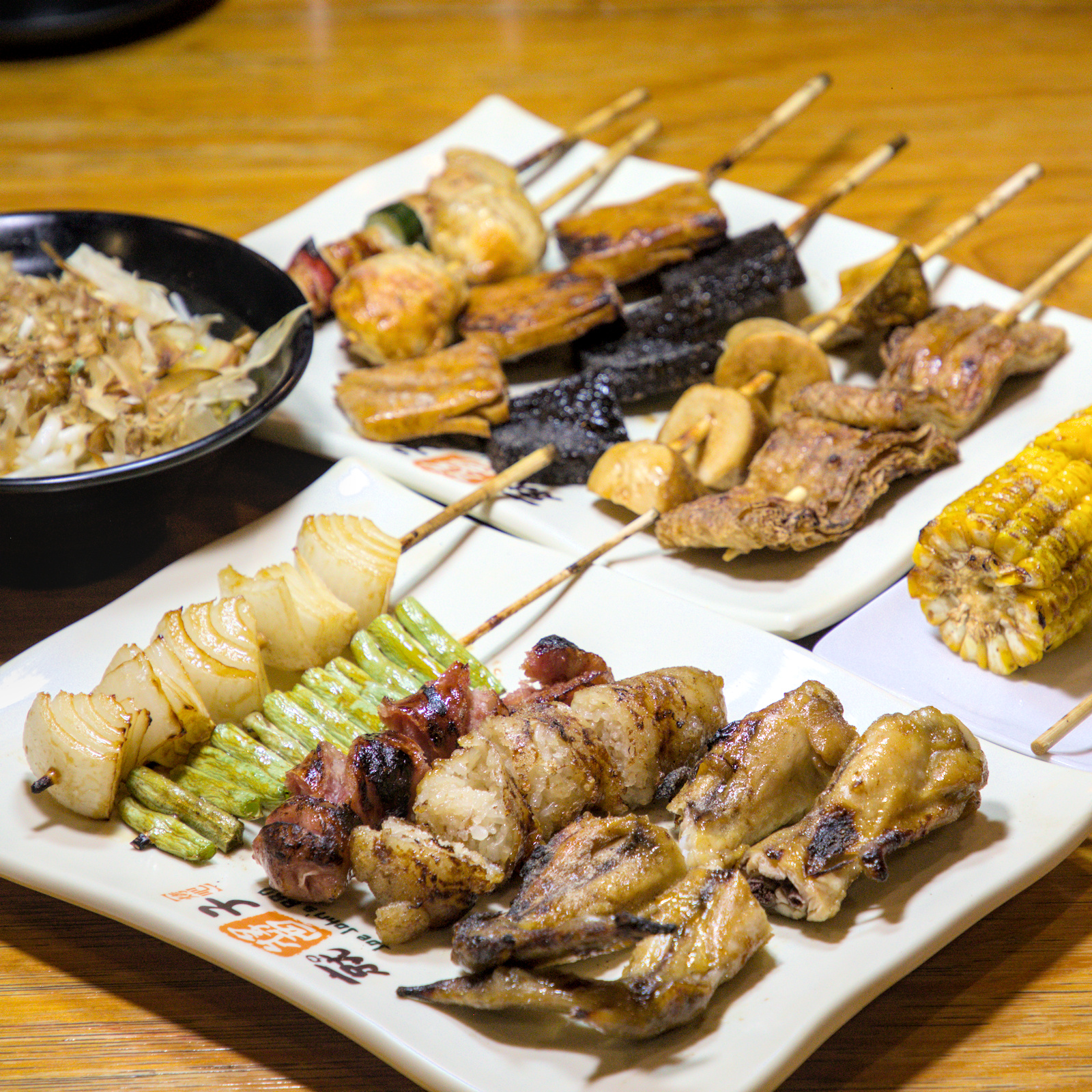 鮭魚皮炸到酥酥脆脆,搭配椒鹽根本完勝洋芋片;花枝騷則是用傳統花枝丸搭配柴魚與美乃滋,入口是濃濃的海味與甜鹹交織,像在吃章魚燒又更有嚼勁。