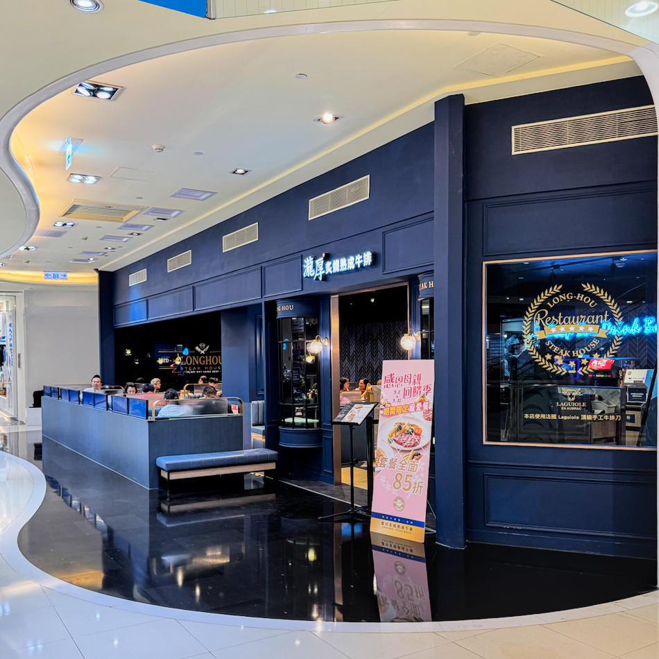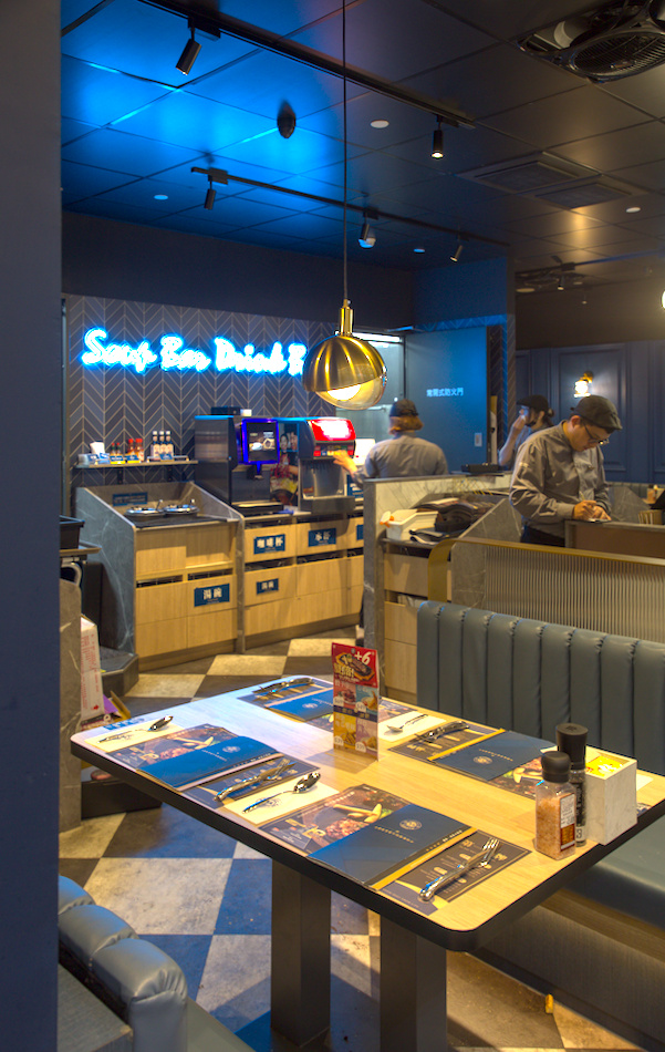 ▲▼瀧厚夢時代店位於夢時代購物中心8樓,外觀使用深藍色調,設計感十足,帶有歐式牛排館氛圍。