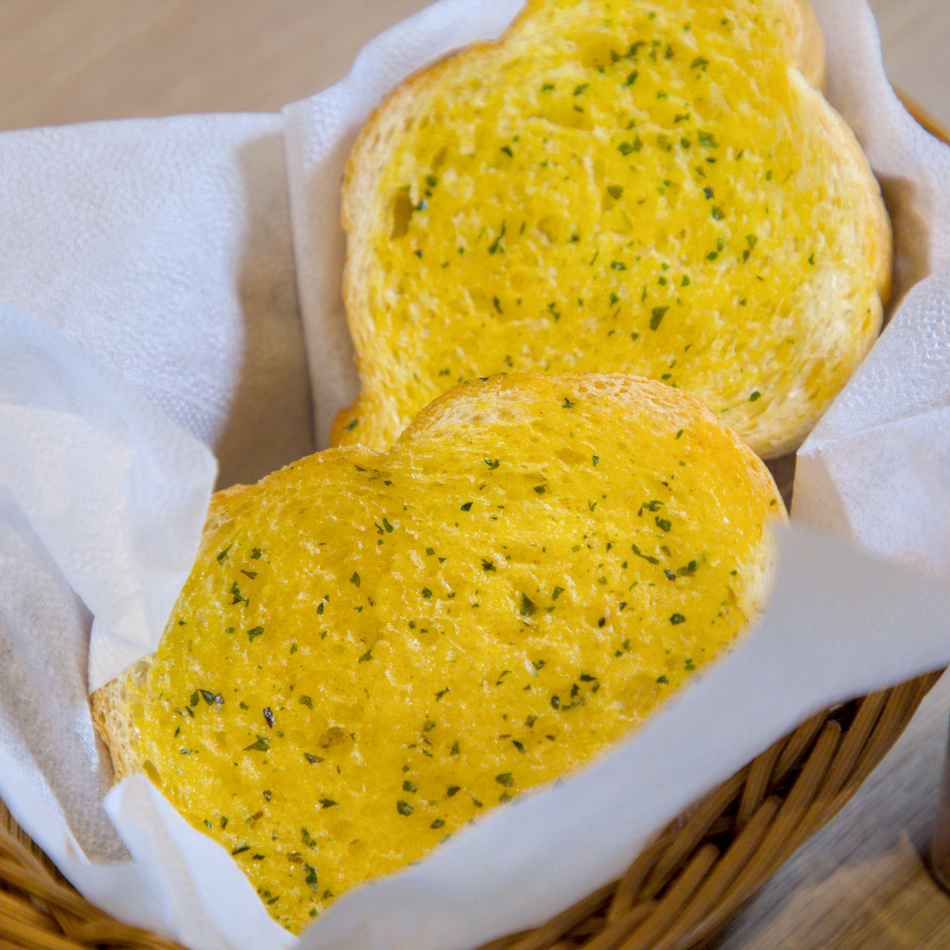 ▲瀧厚的蒜香麵包選用法式長棍切片,抹上自家特製蒜香醬後進爐烘烤。外層微酥帶脆,內裡依然保有濕潤柔軟口感,蒜香撲鼻卻不嗆,咬下是鹹香與奶油的完美融合。