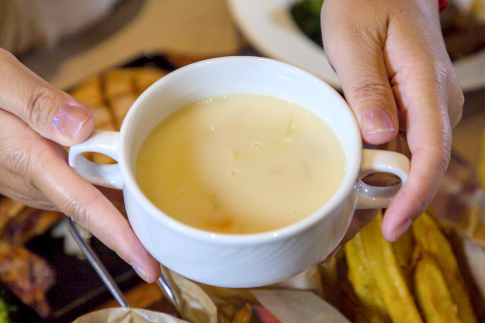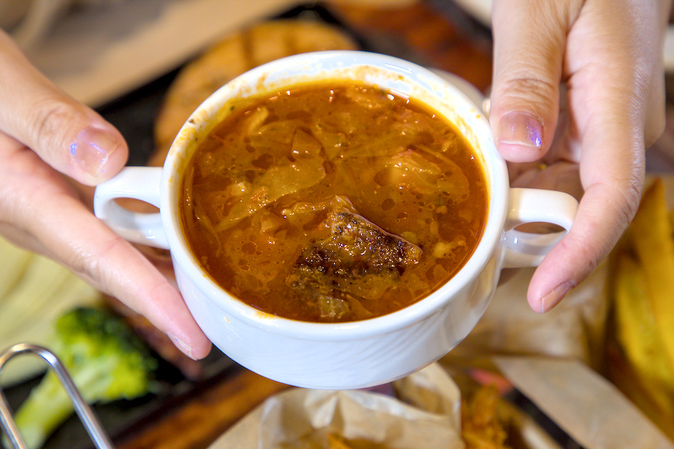 ▲用來搭配牛排或麵包都很對味,甚至不少熟客還會先喝兩碗再吃主餐!這種不藏私的暖心小服務,讓人感受到品牌的誠意。