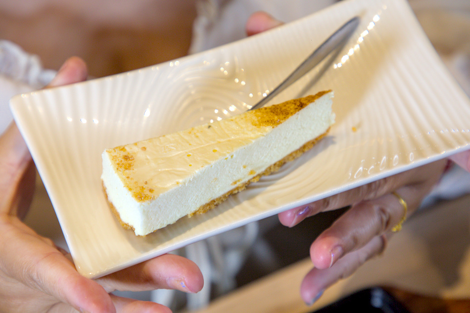 ▲甜點每日不定,有有巴斯克、古典巧克力、伯爵、青檸、千層、布朗尼等不定期推出供顧客挑選。今天甜點吃到的是經典款的「輕乳酪蛋糕」。這款乳酪蛋糕採用減糖配方,入口即化、乳香溫潤不膩,底部搭配微酥的餅乾層,口感層次分明。一入口,淡淡的起司香氣溫柔地在嘴裡化開,就像雲朵般輕盈、毫無負擔感。搭配熱茶或咖啡剛剛好,是餐後最舒服的句點。