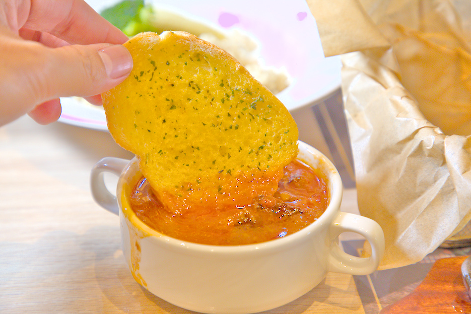 附餐小亮點:蒜香麵包 + 自取羅宋湯,絕配神組合!
