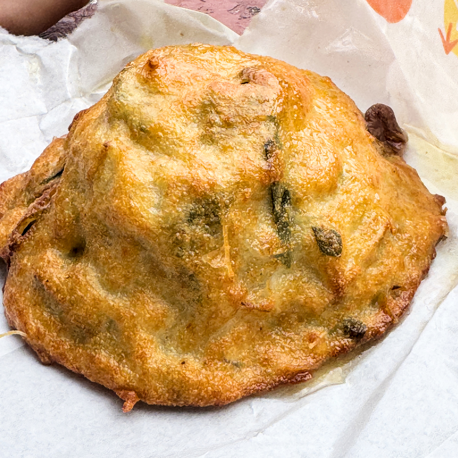 - 台灣蚵嗲外皮:麵糊+蔥段 → 粗酥感
