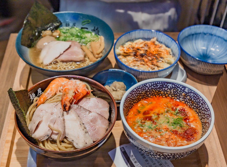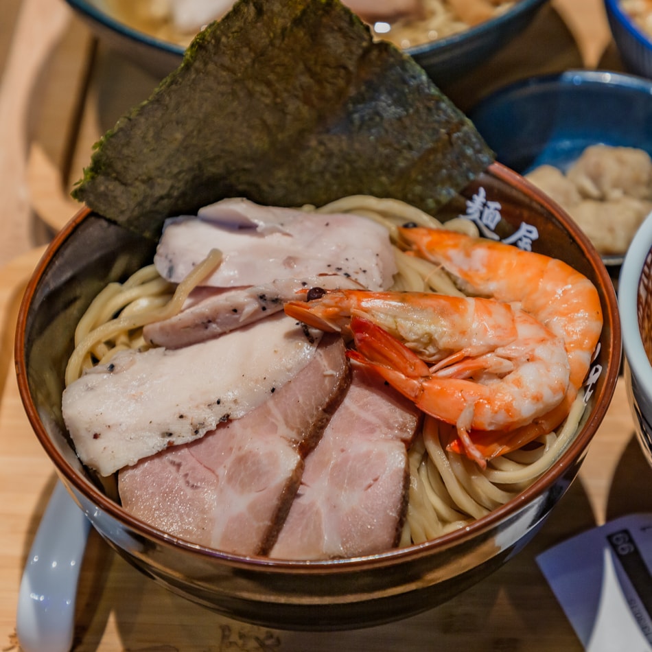 麵屋一燈主打濃厚系沾麵,招牌「濃厚海老沾麵」蝦味爆棚,另有清爽系「干貝雞湯拉麵」、經典「炙燒雞豚拉麵」。配料如雞肉丸子、溏心蛋表現亮眼,小菜與飯類選擇也不馬虎,是沾麵控必訪名店。