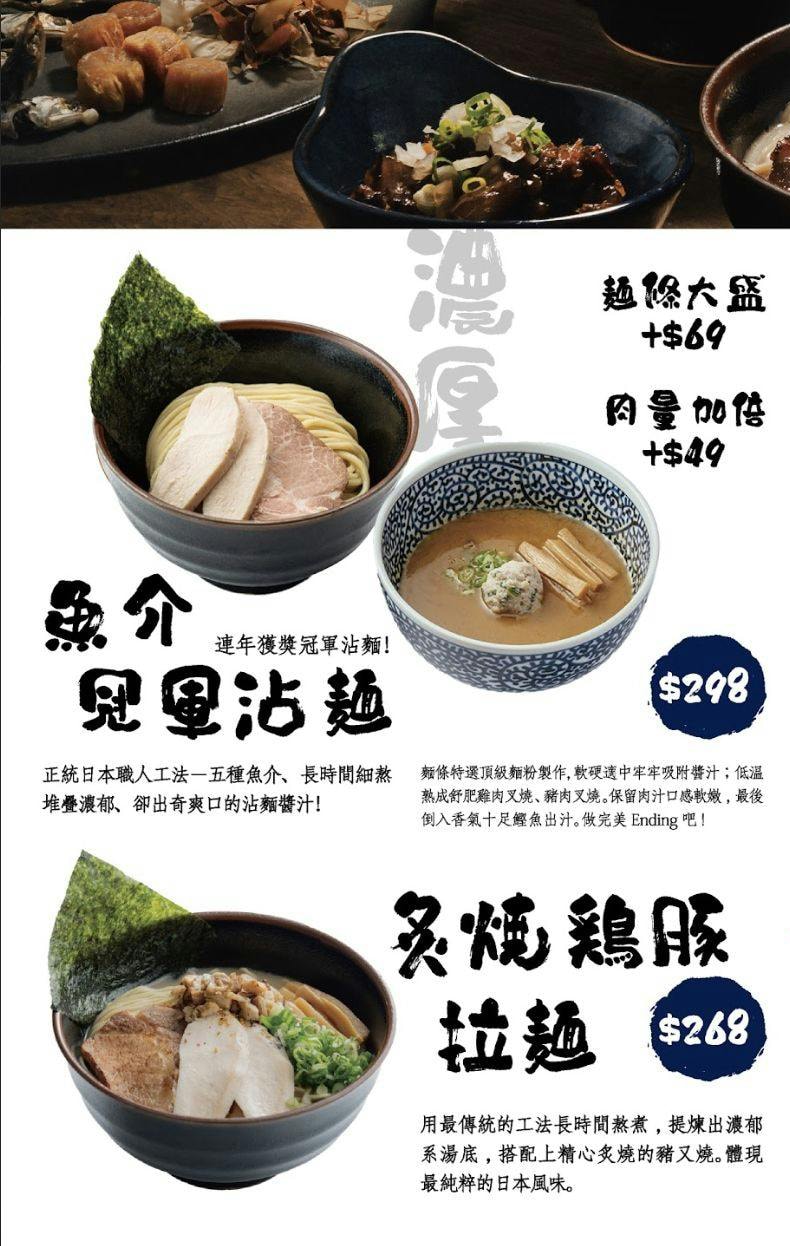 - 沾麵為主打,湯頭與麵體完美結合:店內招牌的「無介覺冥沾麵」與「濃厚海老沾麵」強調麵條與湯頭分離食用,每一口都是高濃度精華。