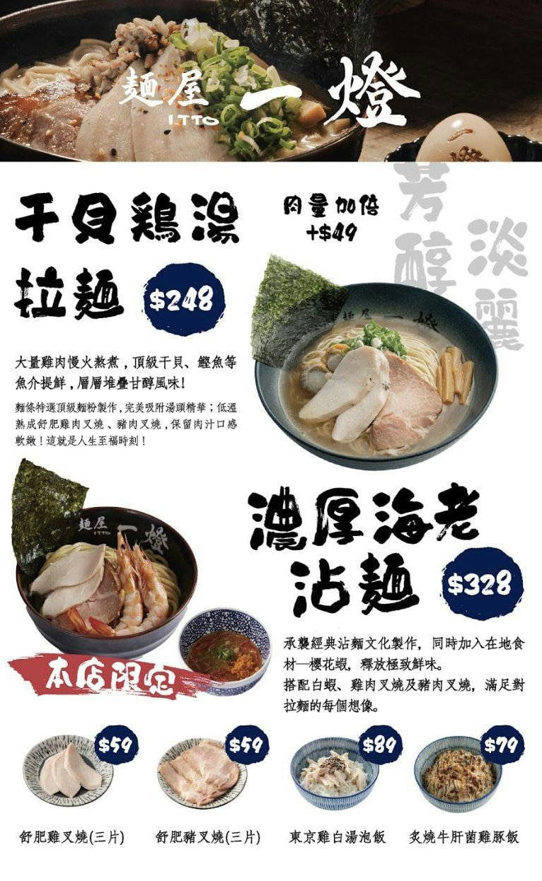 麵屋一燈 高雄夢時代店菜單