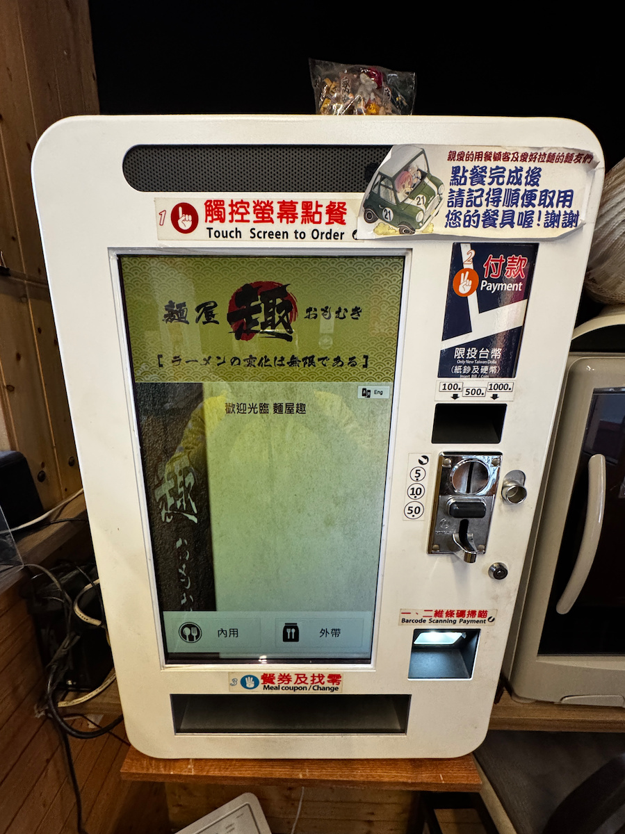 ▲步入店內,吧檯座位讓用餐者可以近距離觀察拉麵師傅的職人手藝,採用自助點餐機點餐。牆面上裝飾著簡約的日式元素,整體環境乾淨且充滿溫馨的深夜食堂氛圍,不論是獨自用餐或是與好友小聚都非常適合。