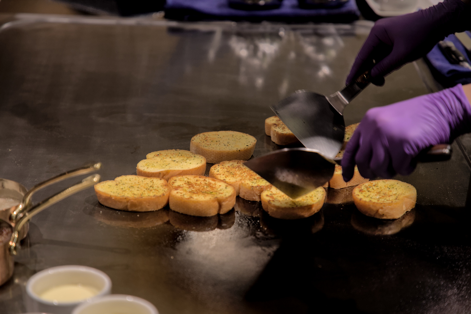 ▲▼看似平凡卻令人驚艷。師傅在鐵板上利用餘溫將麵包雙面煎至金黃微焦,特製蒜香奶油充分滲透進麵包纖維中。外層咬下去有著卡滋卡滋的酥脆感,中心卻依舊保持柔軟彈性,每一口都充滿了厚實的蒜香與奶香,是許多饕客忍不住想續點的經典美味。