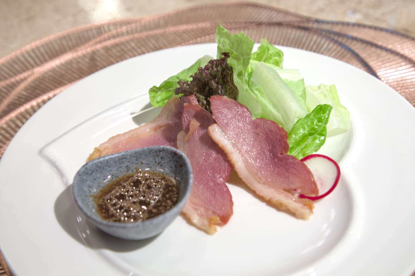 ▲選用多種當季產地直送的清甜鮮果與脆嫩生菜,搭配微微煎過的煙燻鴨胸,鹹香與酸甜在口中交錯,成功洗去前菜殘留的味覺,讓味蕾準備好迎接接下來的海鮮主菜饗宴。