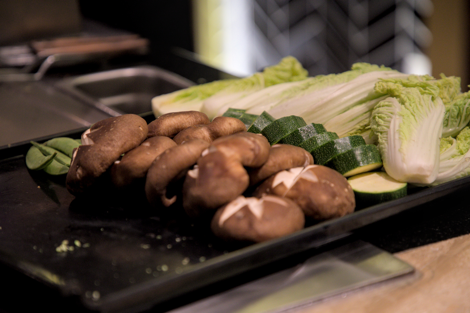 ▲▼選用翠綠的娃娃菜或甜度十足的櫛瓜,僅以極少量油脂與鹽巴提味。師傅運用鐵板的高溫瞬間鎖住蔬菜的水分與甜度,吃起來不僅帶有迷人的鐵板香氣,更保有那種咬下去會噴汁的鮮甜感,是海鮮盛宴後最好的清口劑。