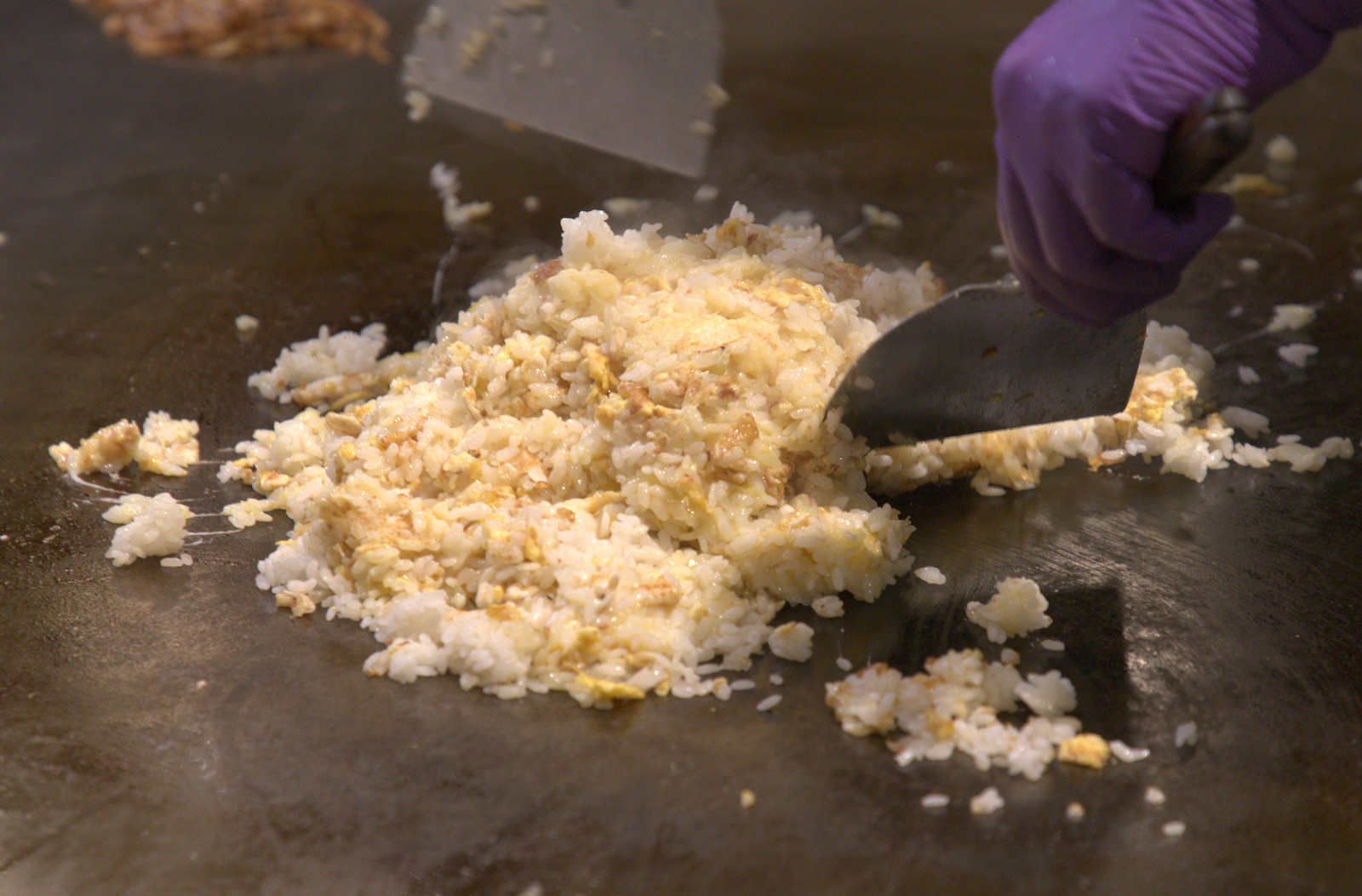 ▲▼這是鐵板燒最經典的「謝幕禮」。看著米粒在鐵板上因受熱而跳躍,加入大量的櫻花蝦與蛋絲反覆翻炒。每一顆米飯都被均勻包裹上蛋香與鹹香,口感粒粒分明、香而不油,每一口都能嚼出濃郁的乾貨鮮甜,即使已經飽到不行也讓人欲罷不能。