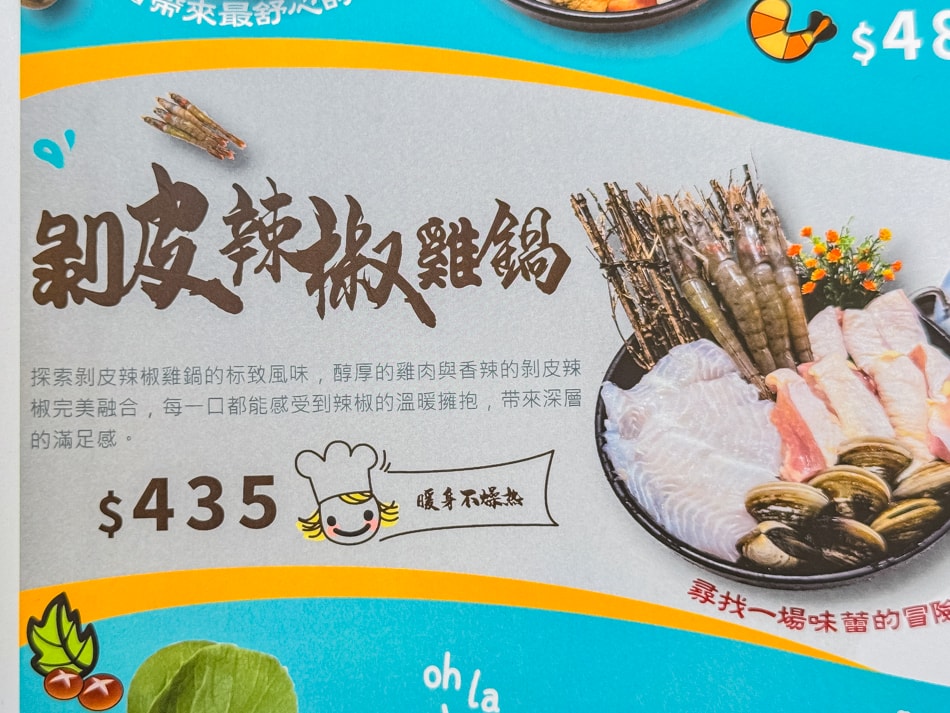時刻暖鍋的菜單豐富多樣,主打各式特色鍋物,並提供多種單點小菜和炸物。