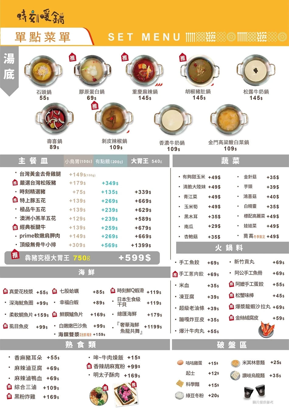 時刻暖鍋菜單