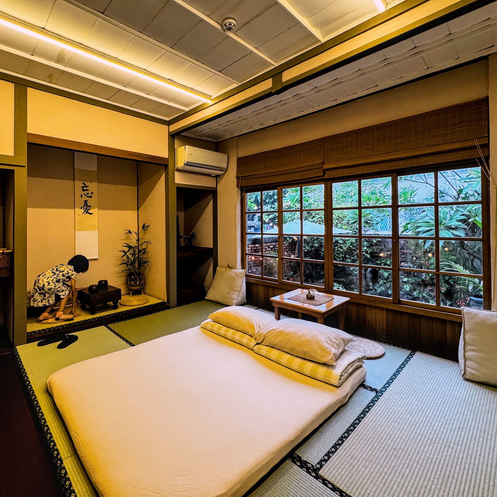 ▲腳踩榻榻米的觸感、淡淡稻草香、低矮床舖、茶具與掛軸——這些生活細節會讓人自然地慢下節奏。