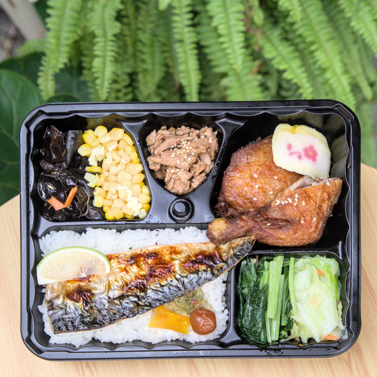 ▲▼主菜有 薄鹽鯖魚、炸雞腿、日本大阪風味燒肉。配菜有梅子、地瓜、海帶芽,被暱稱為「紅綠燈」,這款三拼組合便當集結了三種不同的日式主菜,讓您一次享受多重口感與風味,絕對是視覺與味覺的雙重饗宴,是工地開幕、團體餐最愛款式。