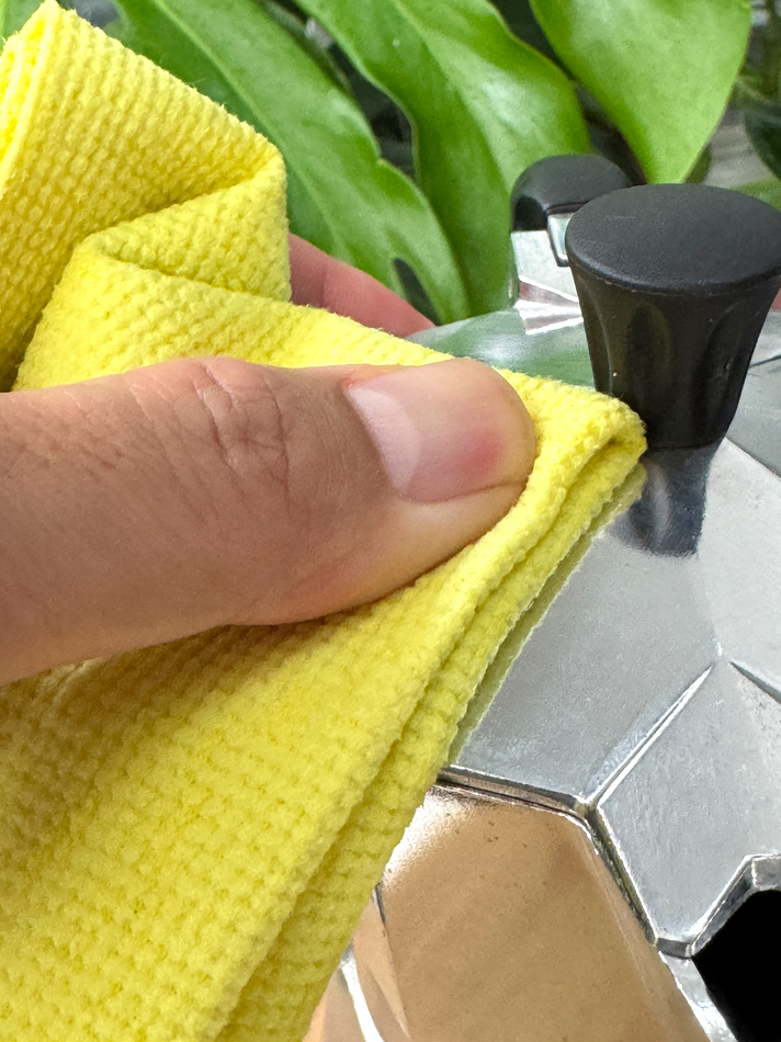 ▲亮面餐具閃亮亮:先用超神巾纖維面清污,再用吸水面吸乾,擦完自己都能嚇一跳。