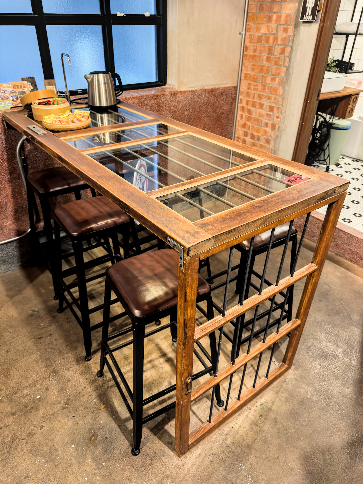 ▲▼這裡還貼心設置了廚房區域和一個長形木窗高腳桌,非常適合我們六人,甚至十人一起聚會。我們在隔天早上享受了一段難得的慢時光:自己動手泡茶、喝咖啡、翻書、、聊天。