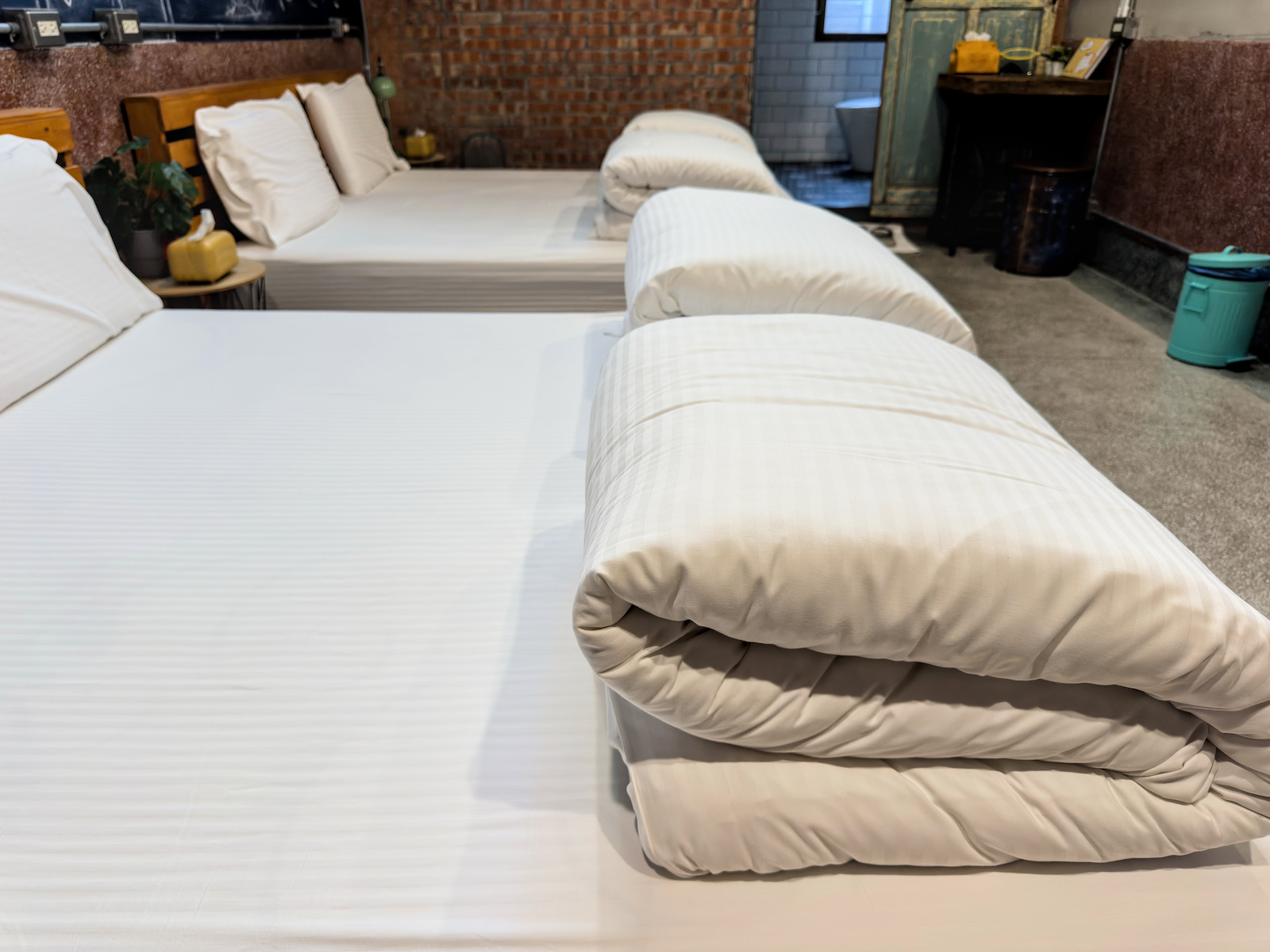 ▲▼房間內提供多張柔軟舒適的床鋪,潔白的寢具質感一流,確保我們一行人都能一夜好眠。民宿的空間配置彈性極高,適合六至十人入住,非常適合多位好友或家族旅行。