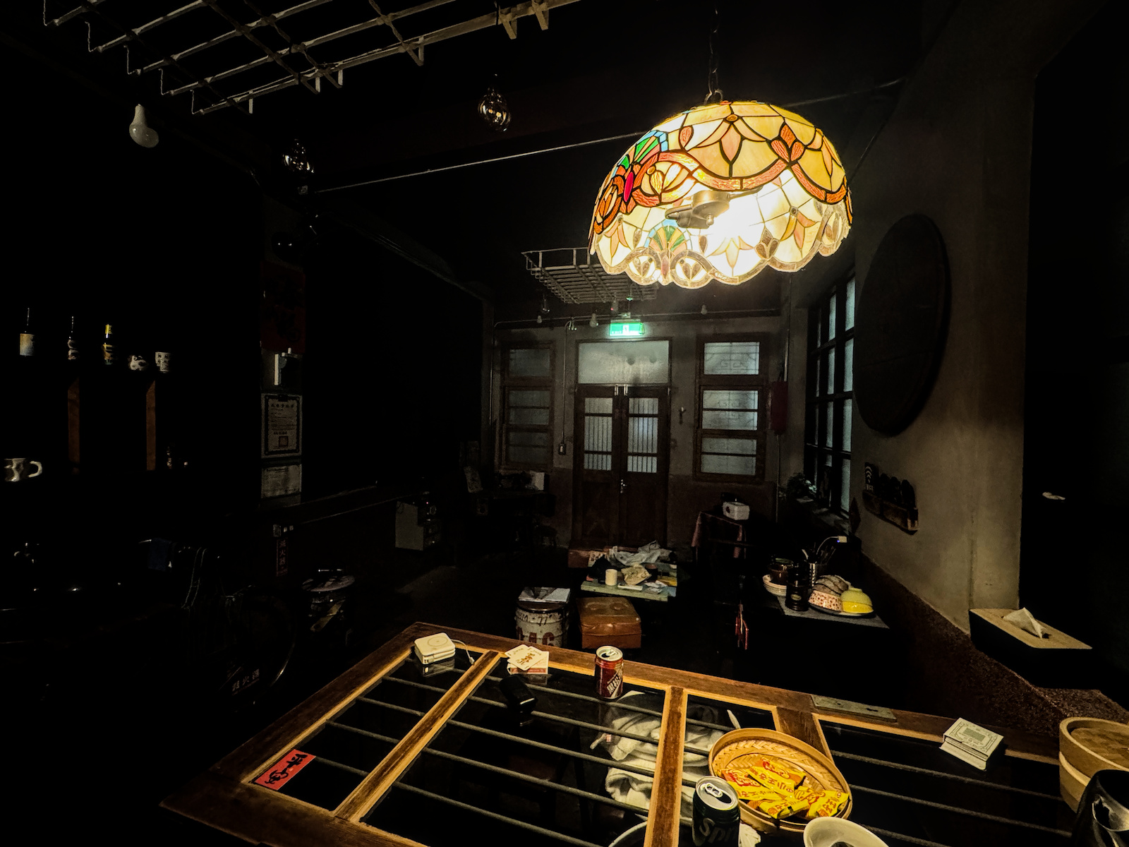 ▲夜晚客廳那盞古典的彩繪玻璃吊燈亮起,讓整個空間變得溫暖而迷人,彷彿置身於懷舊電影場景中。