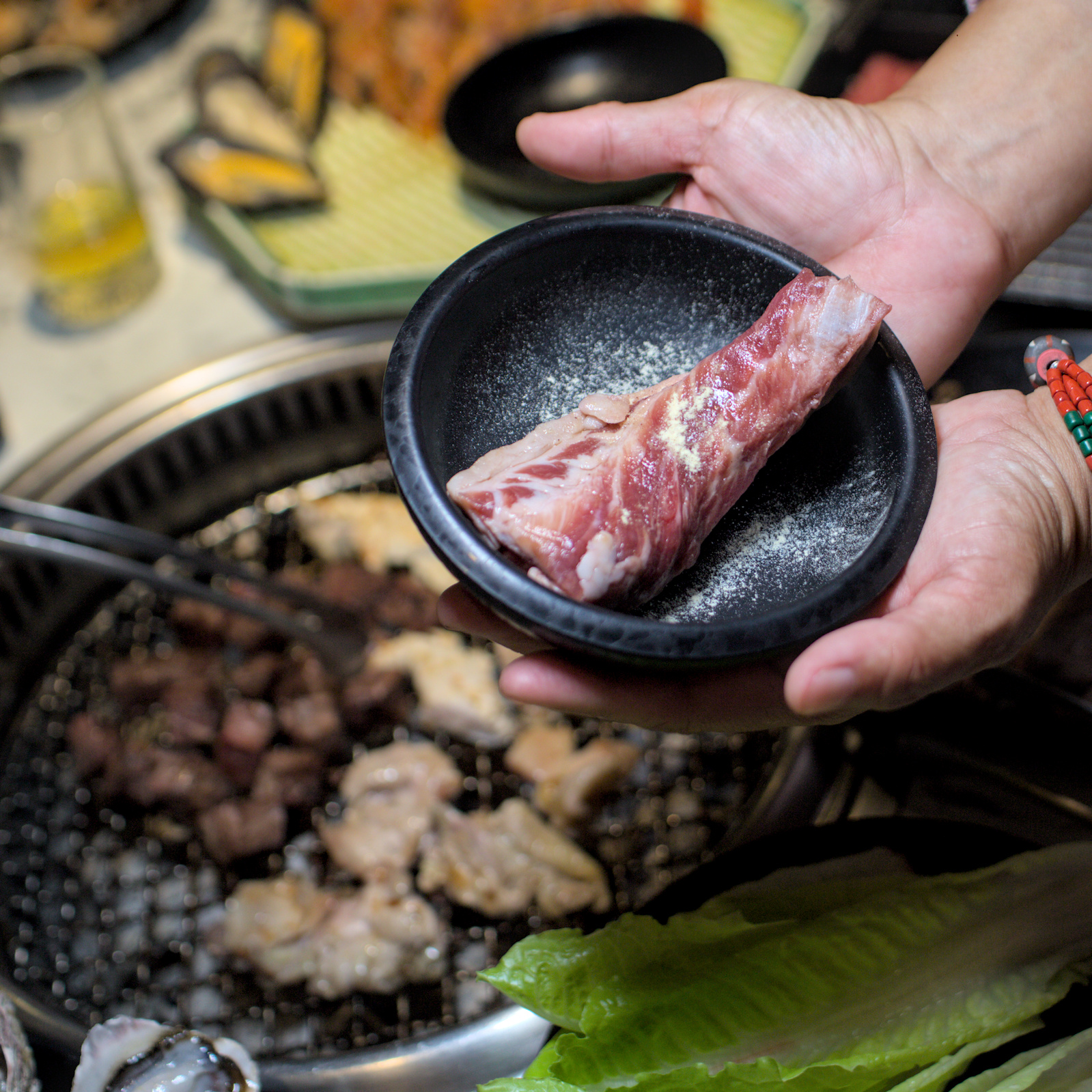 這是一間走質感路線的單點式燒肉店,非常適合情侶約會或重視肉質的老饕。店內裝潢時尚現代,主打嚴選的高級肉品與無煙燒烤環境。每一片肉的油花分布都相當漂亮,簡單烤過後沾點海鹽就能品嚐到肉質的鮮甜。如果不想吃吃到飽那麼撐,想要優雅地品嚐精緻燒肉,這裡會是您的最佳選擇。