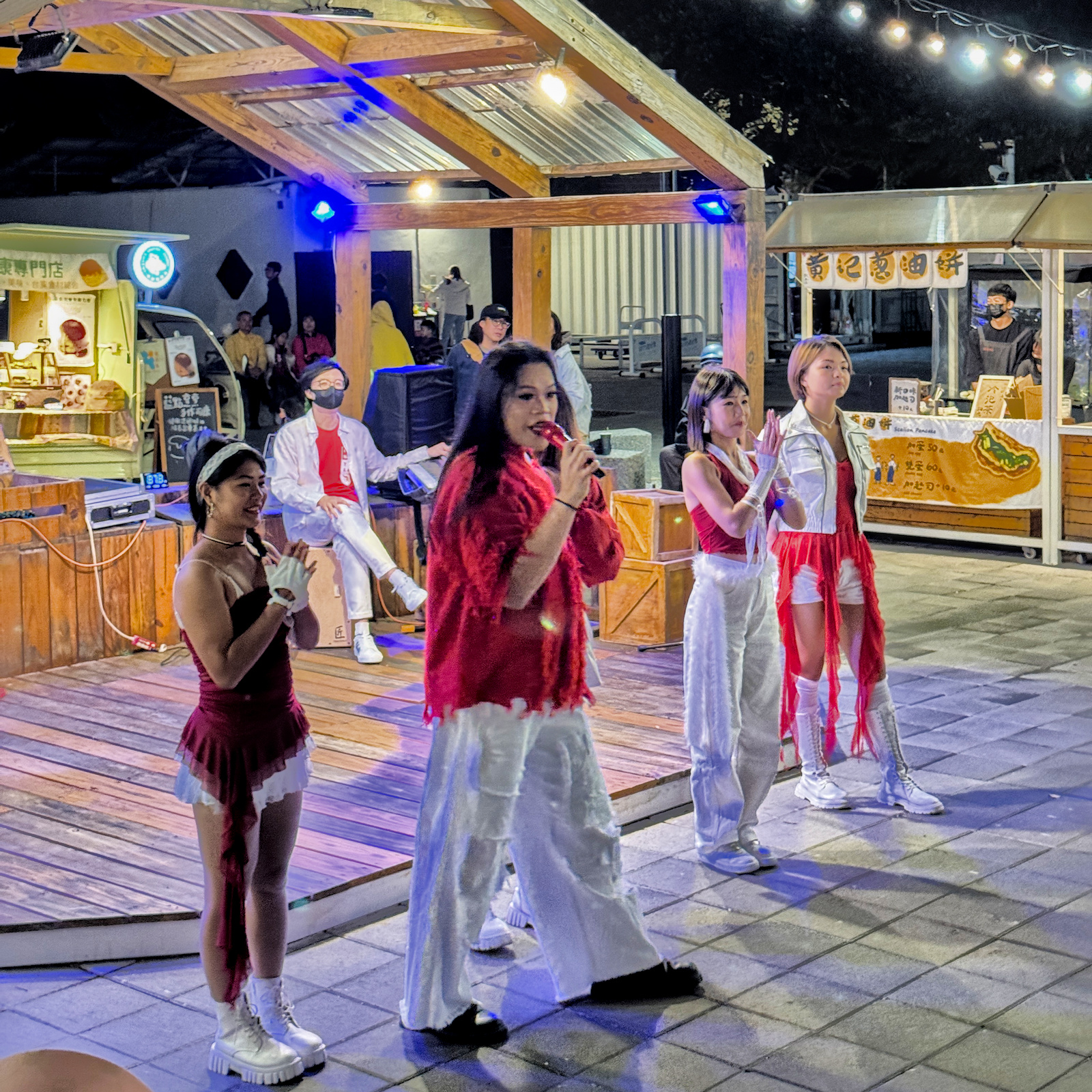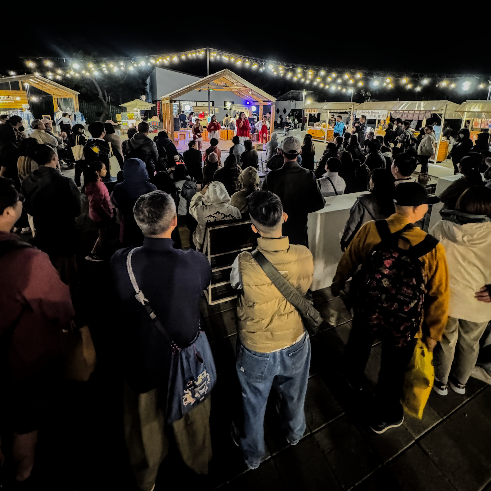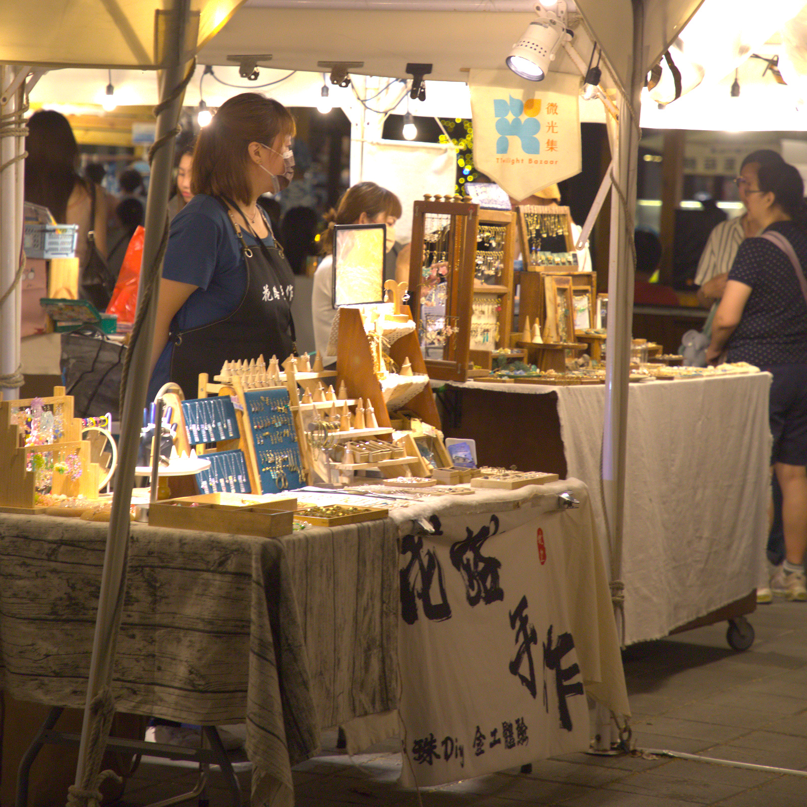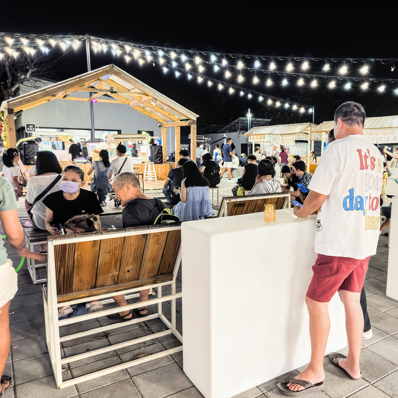 微光集是一座在台東夜裡會發亮的市集,把手作、音樂、人情味全部揉在一起。白色與木質攤位錯落,在燈串下散發柔光,走進來就像進入一座小型節慶。攤位有手繪肖像、創作飾品、彩繪石頭、原創插畫、木作小物,每一攤都充滿作者的故事。廣場不時有舞台表演、街頭歌手、舞蹈節目,大家坐在長椅上吹海風、聽音樂,看孩子自由跑跳,氛圍自在又愉快。微光集不只是逛市集,更像是一場台東夜裡的溫柔聚會,讓旅人和在地人都能放慢腳步、享受微光陪伴的美好。