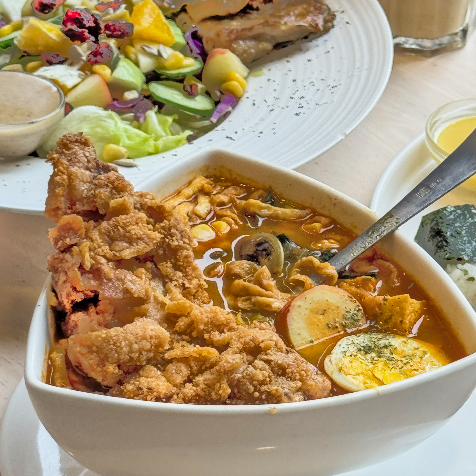 想要開啟美好的一天,就不能錯過這間人氣早午餐店。這裡以超大份量的創意拼盤聞名,無論是馬來雞扒叻沙鍋燒還是經典的三兄弟飯糰拼盤,視覺與味覺都令人滿足。純白潔淨的裝潢風格搭配乾燥花點綴,讓用餐環境格外放鬆。對於想吃得早、又想吃得豐盛的旅人來說,這裡是補充體力、準備開始一日遊的最佳起點。
