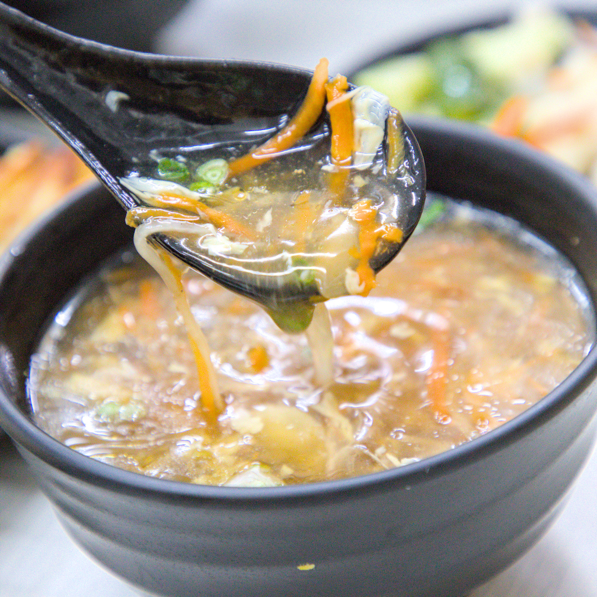 ▲傳統道地的酸辣湯,配料非常豐富,黑木耳絲、紅蘿蔔絲、豆腐與蛋花交織出滑順口感。酸度與辣度平衡得恰到好處,與熱騰騰的麵食搭配在一起最對味。