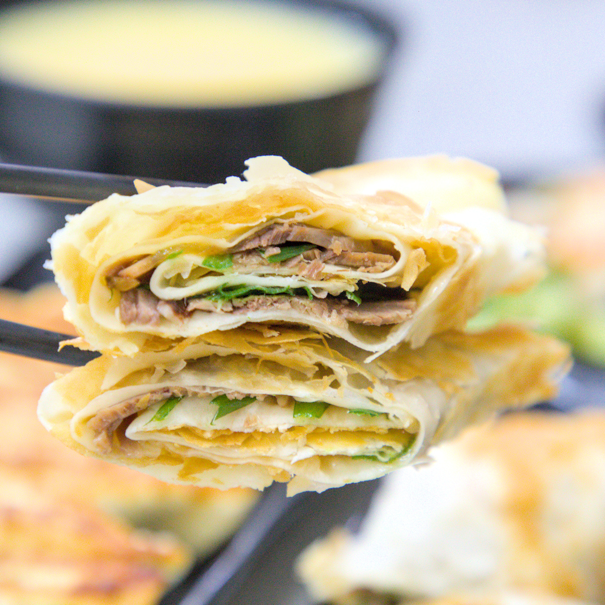 ▲▼而牛肉捲餅則是將酥脆的餅皮包裹著大片牛肉、蔥段與甜麵醬,口口感紮實飽滿,每一口都能吃到餅香與肉香的和諧共演。