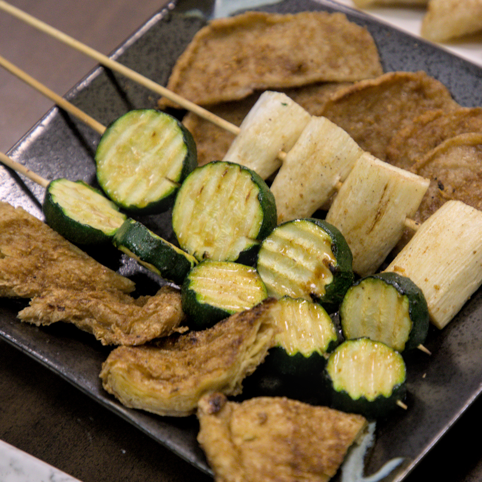 ▲手工黑輪片厚實有彈性,烤過後表面微脆,內裡依舊保有魚漿的Q勁。帶著淡淡的甜香與魚鮮味,刷上特製醬汁後更是鹹甜交織,越吃越涮嘴。