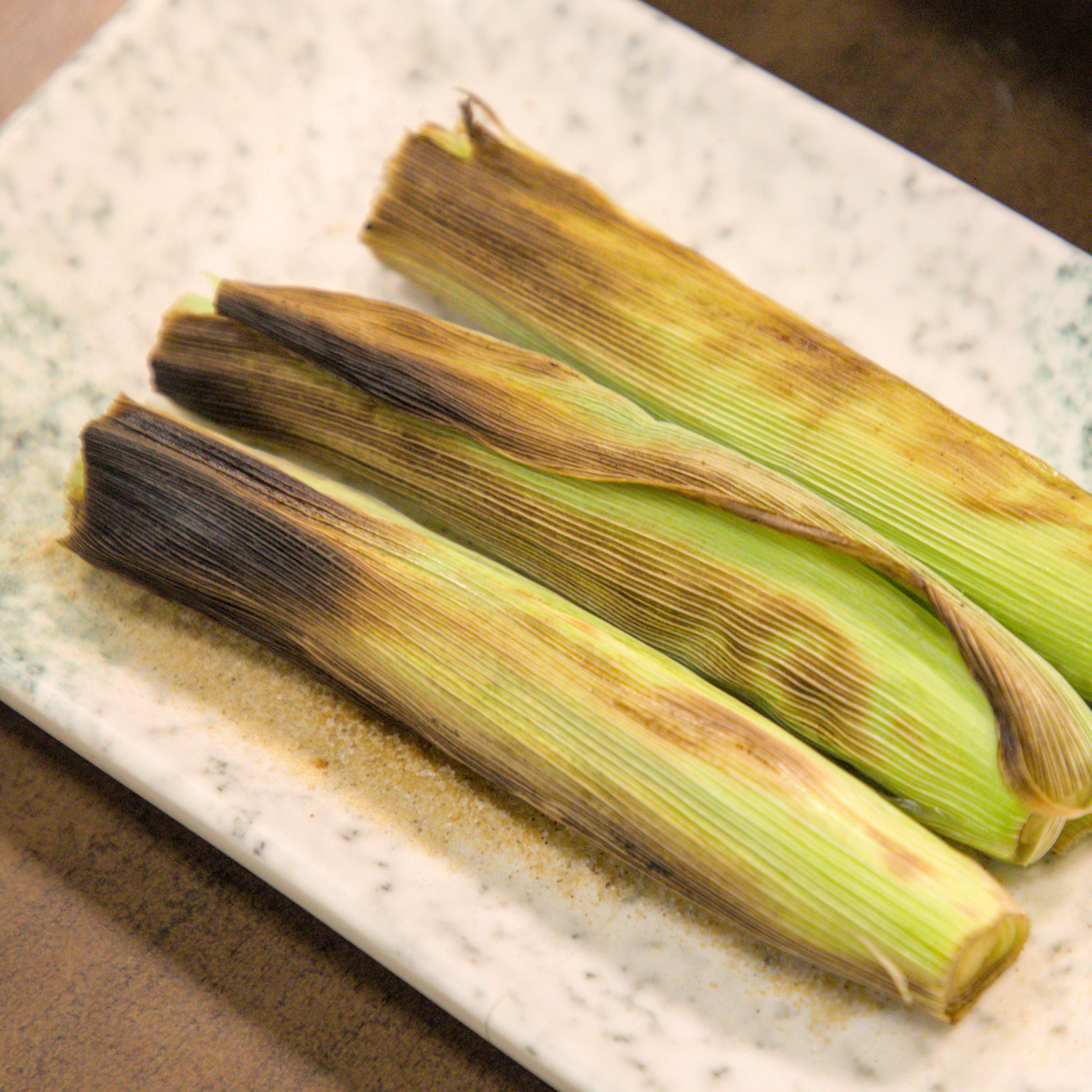 ▲玉米筍連殼下去烤,能保留最自然的水分與甜度。外層焦香帶點炭火味,撥開後的筍子清脆爽口,吃起來甜味十足。撒上少許胡椒粉或椒鹽,更能提升層次感。這道蔬菜類的烤物口感清新爽口,特別適合搭配油脂豐富的肉串一起享用。