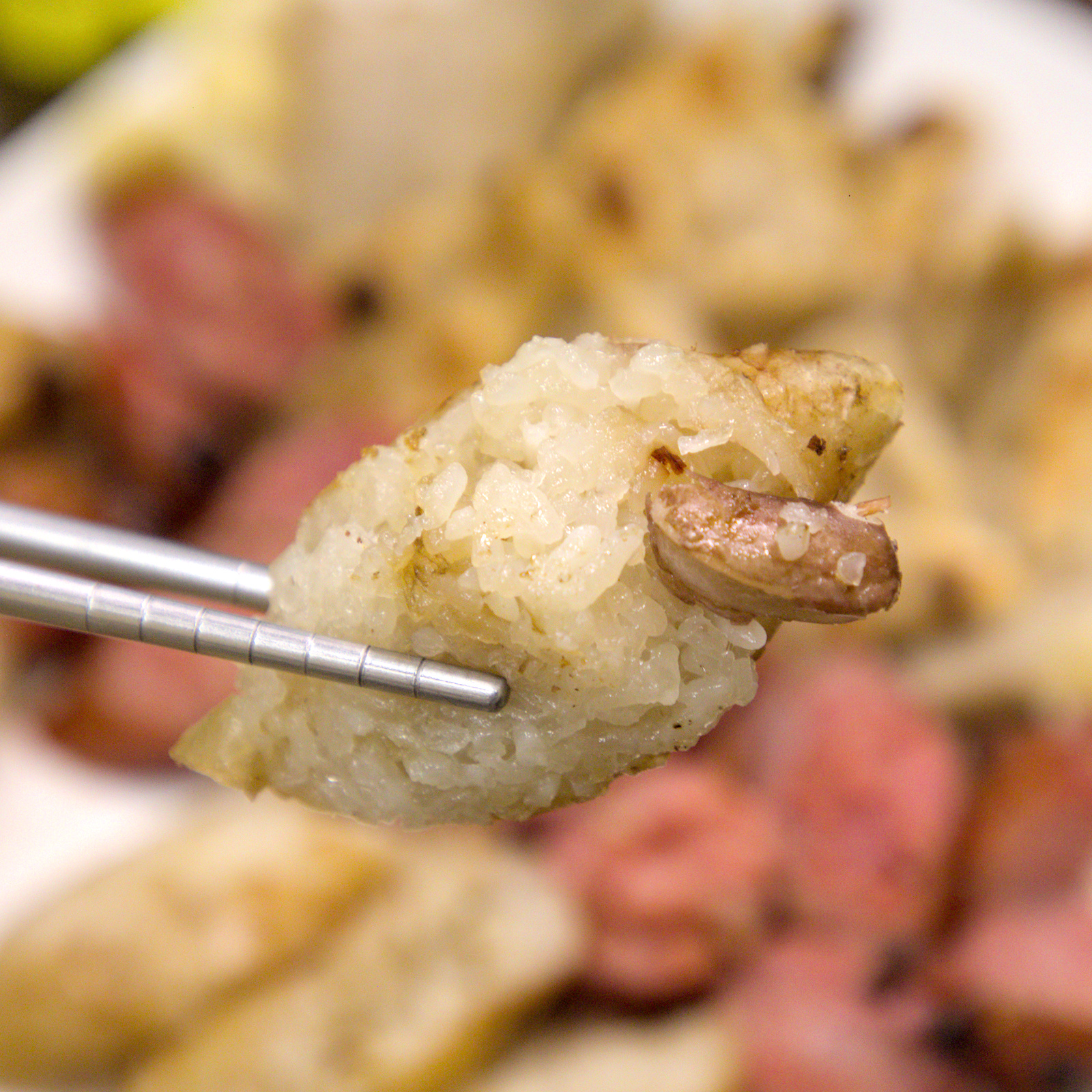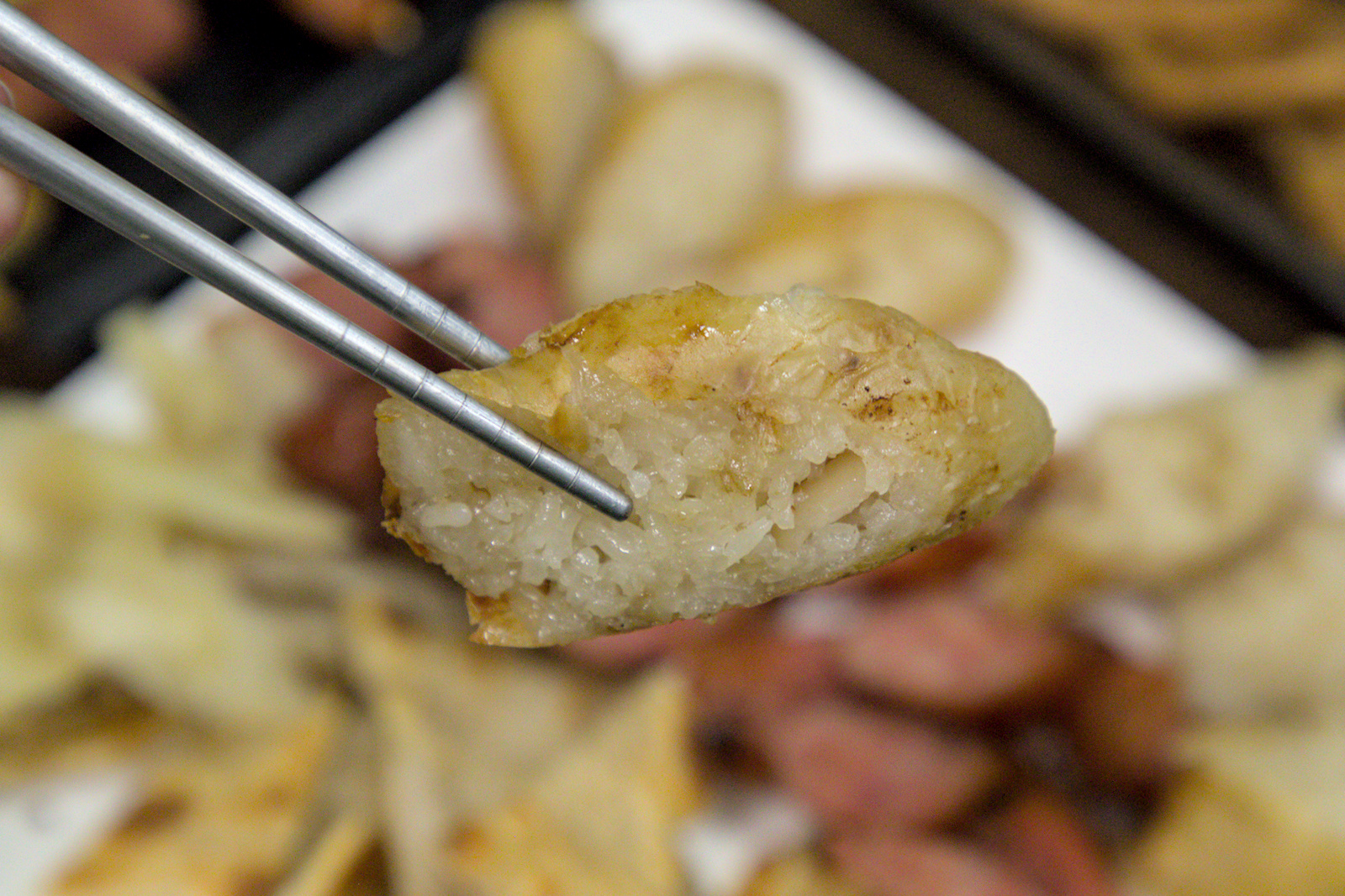 ▲▼巷內的大腸處理得乾淨沒有腥味,外皮烤到帶點微焦,入口時帶著煙燻香氣。米粒緊緊吸附大腸的油香,咬下去外Q內軟,越嚼越香。搭配胡椒或蒜片更添風味,是最能代表台式串燒的靈魂之一,推薦和香腸一起搭配成經典「大腸包小腸」的吃法。